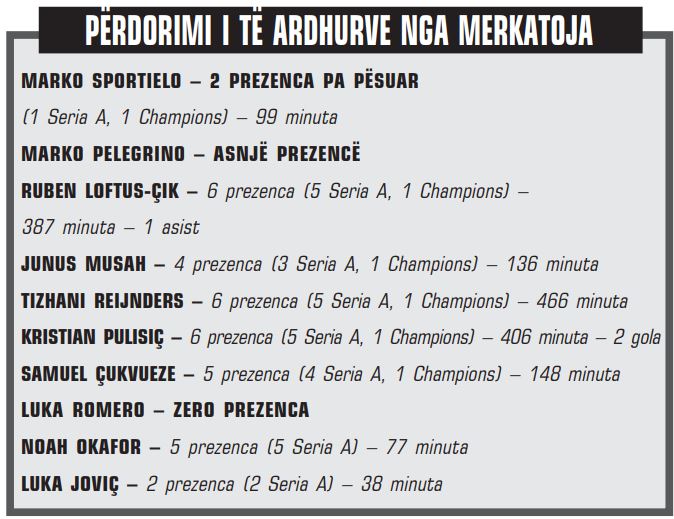 Së shpejti ai do të debutojë si titullar pasi Leao nuk mund të jetë gjithmonë në fushë. Luka Joviç është alternativa e vërtetë ndaj Giroud. Është e arsyeshme të pritet që serbi të startojë në Kaljari, pasi stafeta e fundit (serbi për francezin pas 25 minutash të pjesës së dytë) është një e dhënë.
