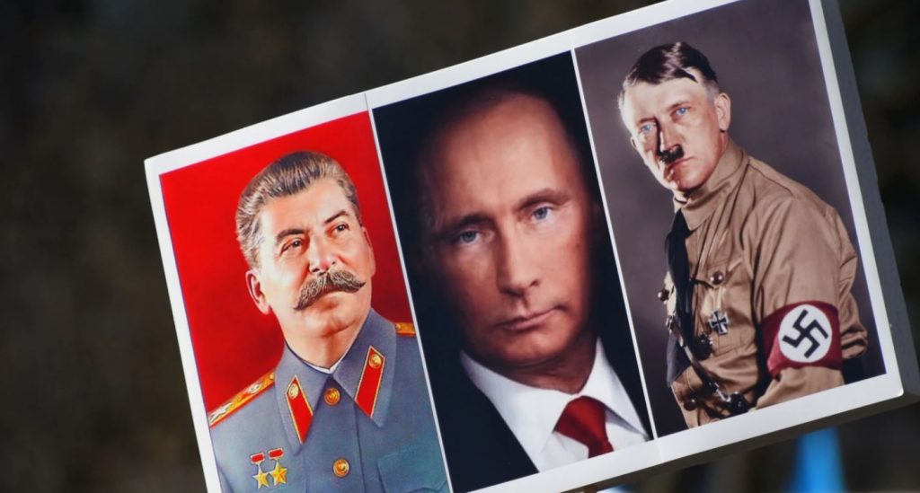 Përderisa disa krahasime perëndimore të Putinit me Adolf Hitlerin e Gjermanisë naziste mund të jenë të pavenda, eksperti i dezinformimit Kalensky tha se mendon se presidenti rus “që një kohë është duke mbajtur fjalime të ngjashme me ato të Hitlerit dhe kjo lidhet me propagandën e Kremlinit, gjuhën dehumanizuese ndaj Ukrainës, duke pretenduar se Ukraina nuk është as komb”.