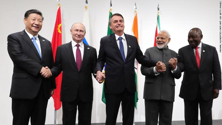 Për Putinin, kjo mund të jetë një ngjarje pozitive: fytyra e tij shkëlqen në ekran së bashku me liderët e tjerë, vendet e të cilëve përbëjnë këtë grupim akronim: Xi Jinping i Kinës, Narendra Modi i Indisë, Jair Bolsonaro i Brazilit dhe Cyril Ramaphosa i Afrikës së Jugut, një shenjë që se Rusia nuk është vetëm.