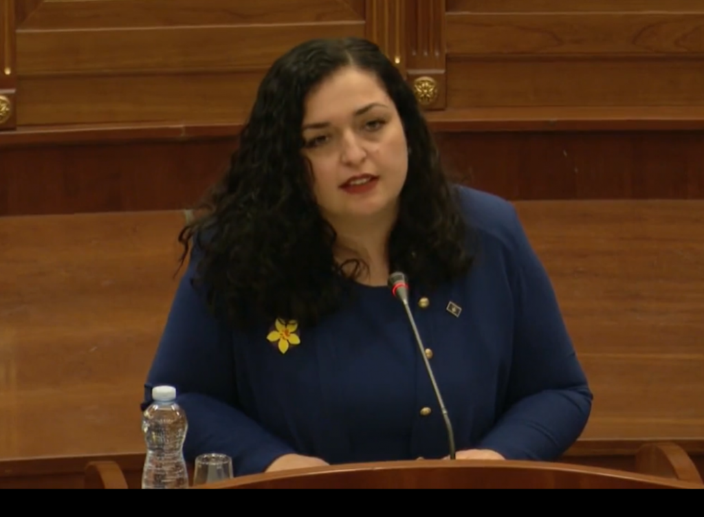 Pas betimit ajo ka falenderuar edhe kryeministrin Albin Kurti, pasi ishte mbështetja e tij e madhe që bëri të mundur zgjedhjen e Osmanit në krye të shtetit. Të gjithë deputetët janë ngritur në këmbë për të përshëndetur presidenten e re të Kosovës.