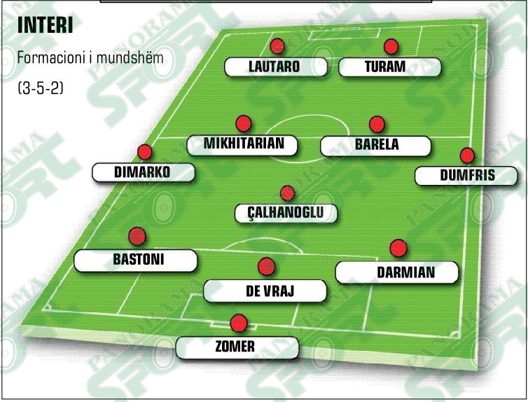 Edhe pas rikuperimit të Açerbit, De Vraj do të mbajë sërish fanellën e titullarit, ndërkohë që Darmian dhe Bastoni do ta shoqërojnë në prapavijë, me Pavarin që do të duhet të presë për të debutuar si titullar. Në sulm, i padiskutueshmi Lautaro do të ketë në krah Markus Turamin.
