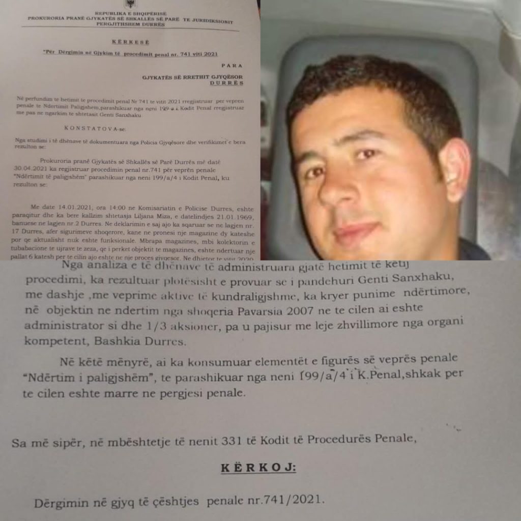 Administratori dhe bashkëpronari i kompanisë Pavarësia 2007, Genti Sanxhaku, është marrë i pandehur nga prokurorja e Durrësit, Teuta Rrudha, për ndërtim të paligjshëm, me qëllim fitimi.
