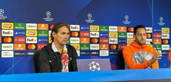 Hakan Çalhanoglu është futbollisti i cili ka shoqëruar trajnerin Inzagi në konferencën për shtyp në prag të ndeshjes me Benfikën në Champions.