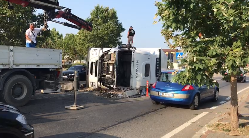 Ndërkohë po punohet për heqjen e kamionit nga rruga për rinisjen e qarkullimit në këtë zonë.