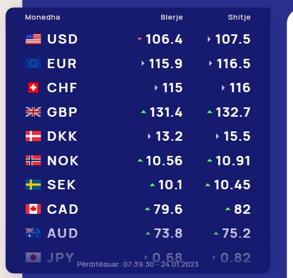Ndërkohë euro blihet me 115.9 lekë dhe shitet me 116.5 lekë, duke treguar qendrueshmeri.