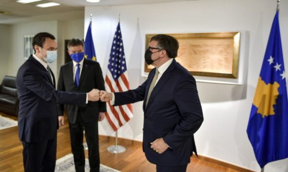 Kryeministri i Republikës së Kosovës, Albin Kurti priti sot në zyrën e tij Përfaqësuesin Special të BE-së për Dialogun Kosovë-Serbi dhe çështje të tjera rajonale të Ballkanit Perëndimor, Miroslav Lajčák dhe Zëvendësndihmës Sekretarin amerikan të Shtetit për Çështje të Evropës dhe Euroazisë, njëherit i dërguar i posaçëm i Shteteve të Bashkuara të Amerikës për Ballkanin Perëndimor, Matthew Palmer.