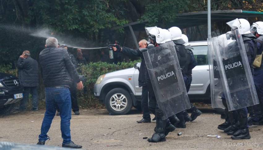 Mediat e Shqipërisë raportojnë se Policia po hedh ujë në drejtim të protestuesve për të neutralizuar protestën.