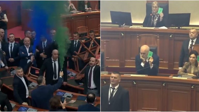 Nuk kanë munguar kapsollat dhe tymueset nga deputetët e opozitës, por kjo situata nuk e ka penguar kryetaren e Parlamentit, Lindita Nikolla që të votojë nen për nen brenda 7 minutave buxhetin, duke hedhur poshtë të gjitha amendamentet e opozitës.