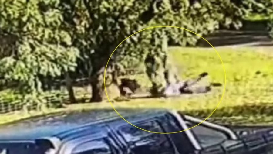 Në disa pamje të publikuara shihet se si një kangur ndjek një burrë të tmerruar të cilin e rrëzoi në tokë, përderisa të dy fillojnë ta godasin njëri-tjetrin, në një përballje ku të dy “luftëtarët” duken si mos më keq.