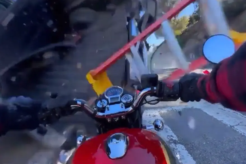 Motoçiklisti ishte katapultuar jashtë mjetit të tij teksa ishte duke pritur në semafor, në një kryqëzim të mbushur me trafik në Malibu, Kaliforni, SHBA.