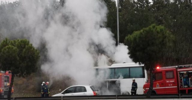 Momente paniku u shpalosën në Selanik, kur një autobus që transportonte studentë u përfshi nga flakët.