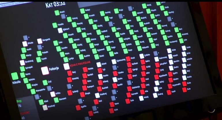 shtë mbyllur seanca maratonë në Kuvendin e Shqipërisë për diskutimin mbi buxhetin e vitit 2023 dhe paketa fiskale. Projekt-buxheti është miratuar me 76 vota pro, ndërsa 41 deputetë kanë votuar kundër, ndërsa nuk ka pasur asnjë abstenim.
