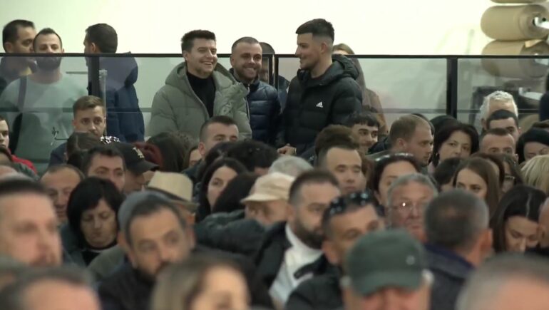 E ndërsa fliste për sistemin e drejtësisë, Ramës ia tërhiqen vëmendjen disa djem të fund të sallës, që sipas tij, fillojnë të duartrokasin dhe nuk ndalojnë më.