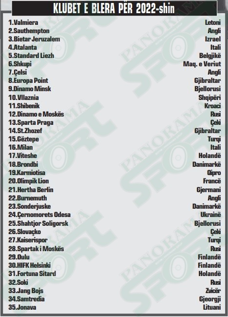 KLUBET E BLERA- Në këtë listë futen edhe klube të mëdha si Milani, Çelsi apo Olimpik Lion, Atalanta, Sauthempton, Viteshe, Herta Berlin apo edhe Spartak dhe Dinamo e Moskës, të cilat kanë ndryshuar pronar.