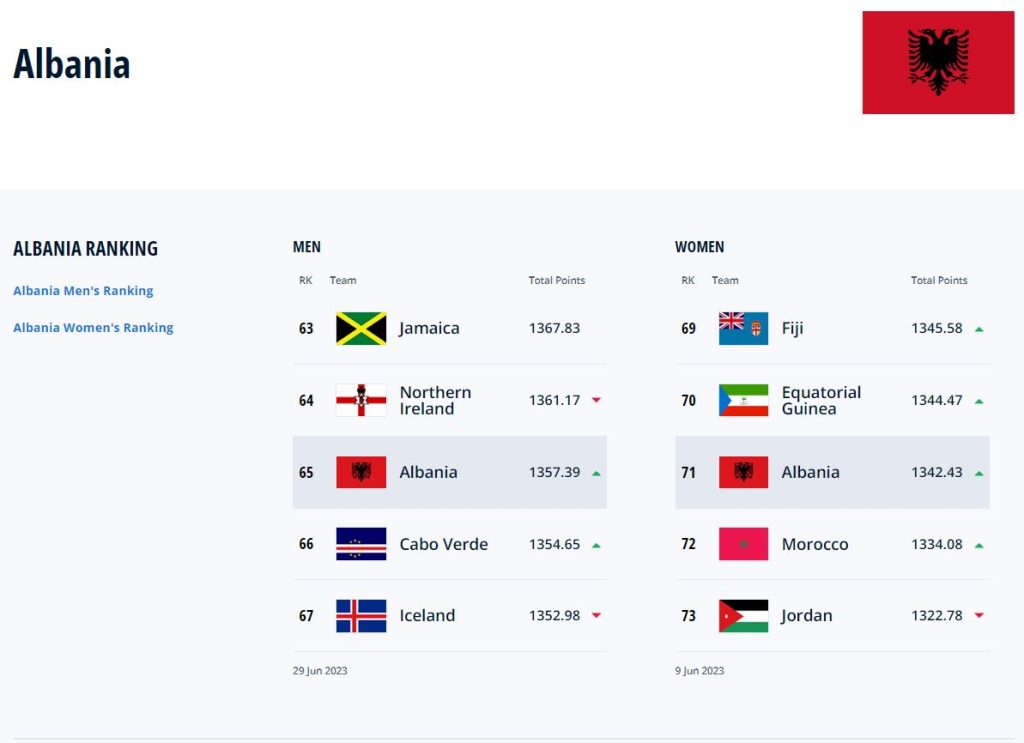 Kujtojmë që Shqipëria ka vitin 2015 si rekord për ngjitjen në klasifikim, ku pak kohë para Europianit e shihte veten në vendin e 22. Ndërkohë, pozita më e ulët në histori për Shqipërinë, ka qenë vendi i 124.