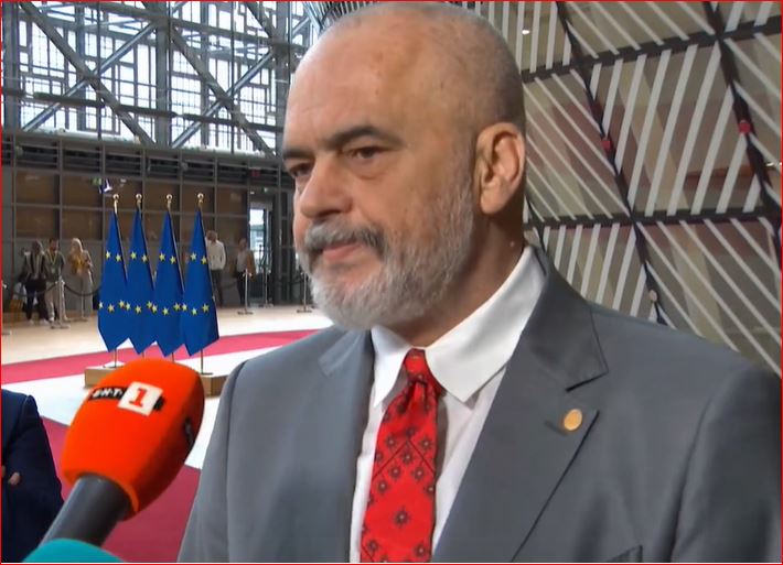 Kryeministri Edi Rama ka folur për mediat nga Samiti i BE-së në Bruksel ku ka akuzuar drejtpërdrejte Bullgarinë se në mënyrë të turpshme po mban peng anëtarësimin e dy vende anëtare të NATO-s.