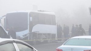 Imazhet televizive treguan dhe një autobus të dëmtuar rëndë në pjesën e bagazheve. Mbetjet e shpërthimit të një automjeti më të vogël qëndronin aty pranë.