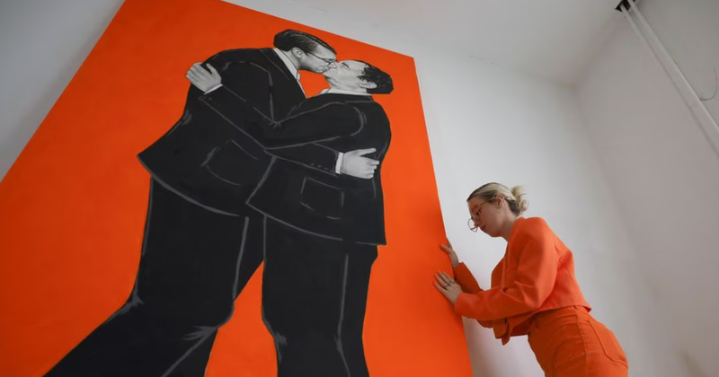 Ndërsa liderët e Kosovës dhe Serbisë po takohen për të negociuar një marrëveshje paqeje, një artiste e re nga kryeqyteti i Prishtinë ka të ngjarë të vazhdojë të marrë kërcënime për një pikturë që përshkruan liderët e të dy vendeve duke u puthur. Piktura e Ermira Muratit, e cila është 3 m e gjatë, e ilustron kryeministrin e Kosovës Albin Kurti dhe presidentin serb Aleksandër Vuçiç, të përqafuar, duke puthur njëri-tjetrin në buzë me sy mbyllur.