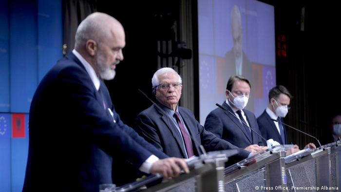 Burime nga zyra e shtypit në Kryeministri, citojnë kryeministrin Edi Rama të ketë vlerësuar deklarimin nga Komisioni Europian që Shqipëria ka përmbushur kushtet për konferencën e parë ndërqeveritare të BE. Ai adresoi kritika ndaj BE lidhur me përjashtimin e vendeve të Ballkanit Perëndimor nga plani i BE për vendet anëtare lidhur me vaksinat anti-Covi-19.
