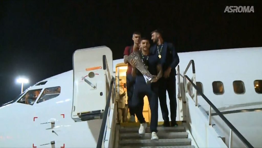 Menjëherë pas këtij suksesi, ekipi verdhekuq u nis direkt për në kryeqytetin italian ku në aeroportin e Fiumiçinos dhe në qendrën sportive të Trigorias ku u gjend përpara mijëra tifozëve ku kanë pritur kampionët e ri të Ligës së Konferencës deri në orët e para të mëngjesit të sotëm.